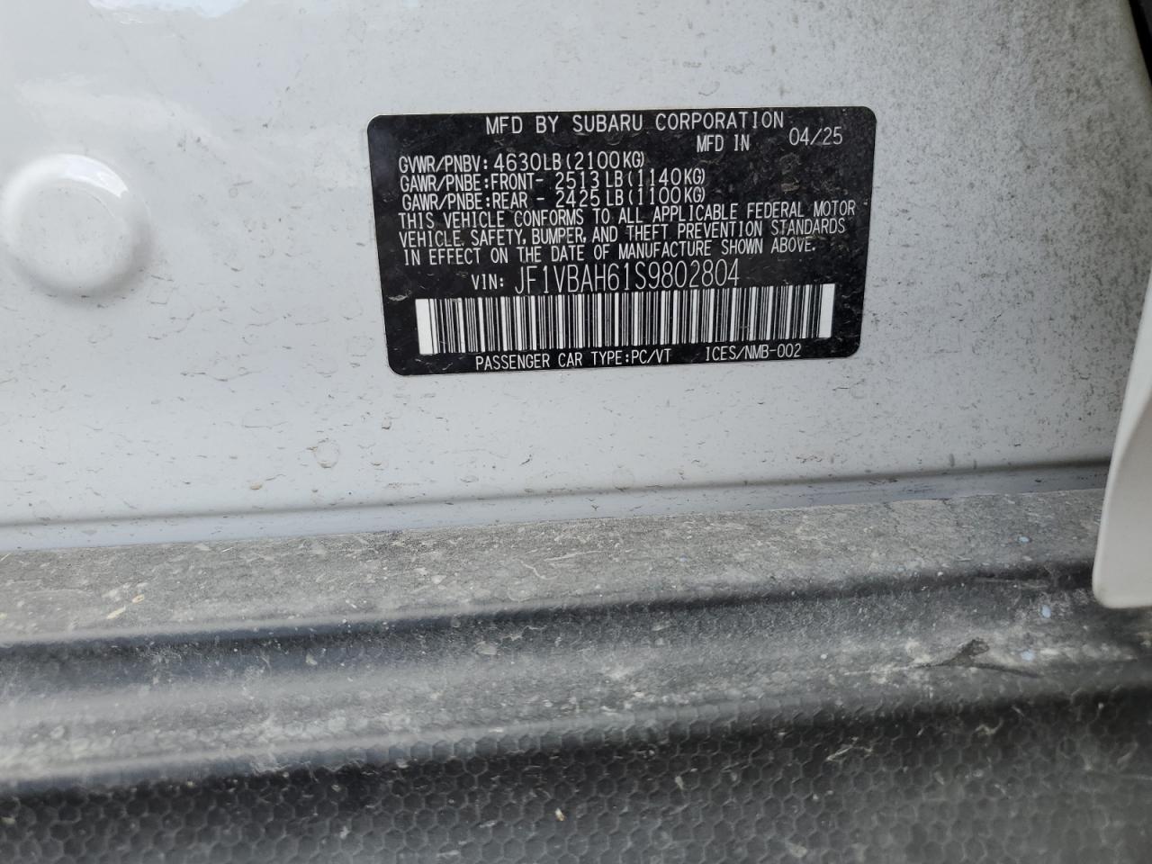 2025 SUBARU WRX - JF1VBAH61S9802804, цвет - Белый, 2.4, Бензин, Полный привод из США