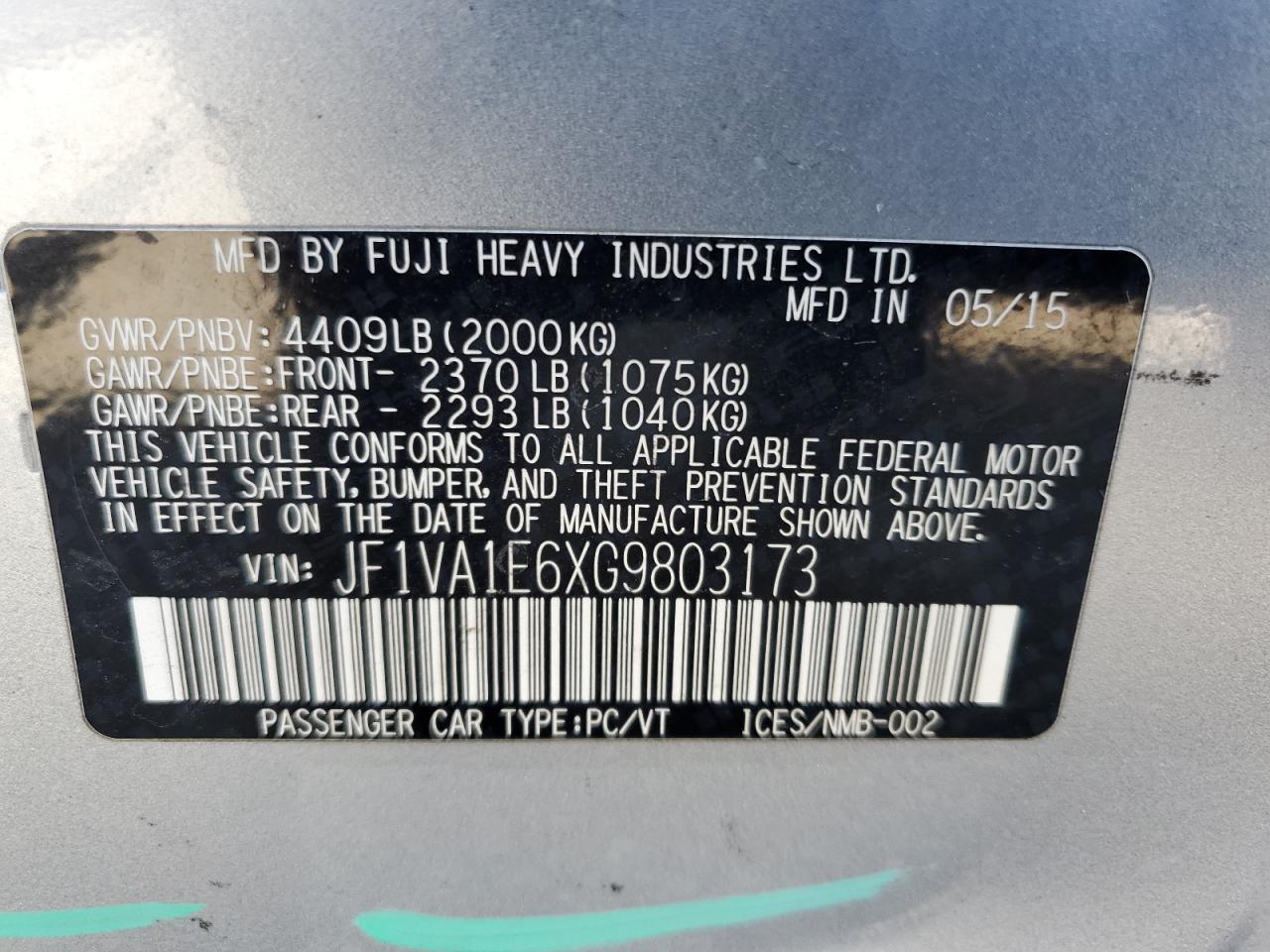 2016 SUBARU WRX - JF1VA1E6XG9803173, цвет - Серебряный, 2.0, Бензин, Полный привод из США