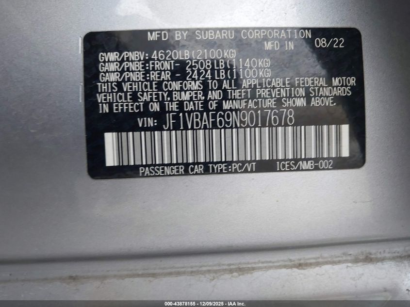 2022 SUBARU WRX - JF1VBAF69N9017678, цвет - Серебряный, 2.4, Бензин, Полный привод из США