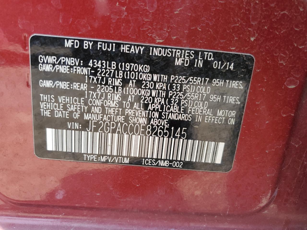 Цвет КрасныйЦилиндры 4Привод Полный приводVIN JF2GPACC0E8265145Состояние Заводится и едет (проверено)Повреждения Передняя или задняя