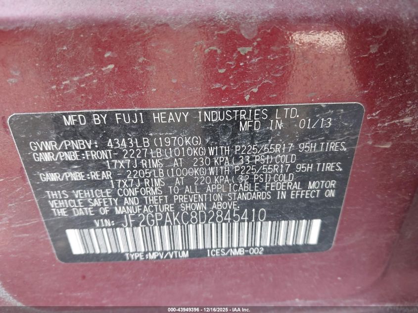 2013 SUBARU XV - JF2GPAKC8D2845410, цвет - , 2.0, Бензин, Полный привод из США