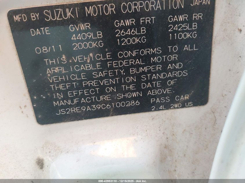 2012 SUZUKI KIZASHI - JS2RE9A39C6100286, цвет - Белый, 2.4, Бензин, Передний привод из США