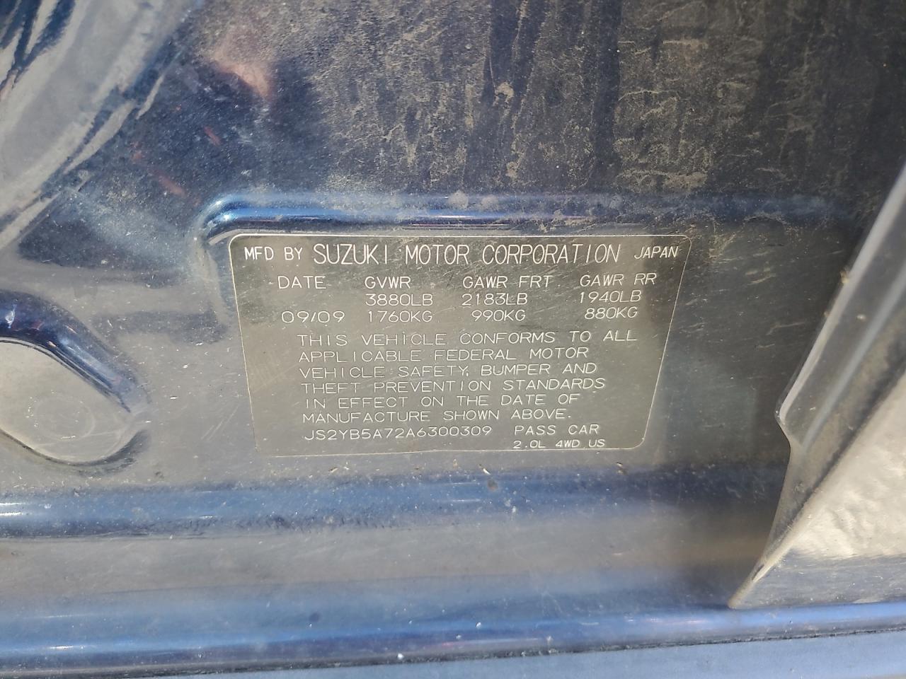 2010 SUZUKI SX4 - JS2YB5A72A6300309, цвет - Черный, 2.0, Бензин, Полный привод из США