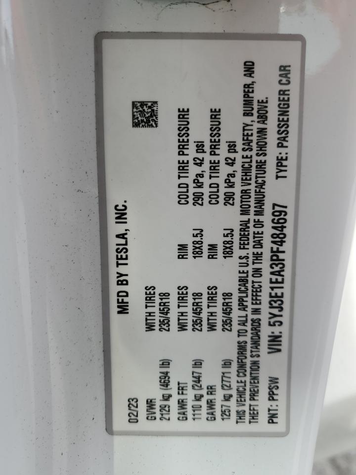 2023 TESLA MODEL 3 - 5YJ3E1EA3PF484697, цвет - Белый, , Электрический, Задний привод из США