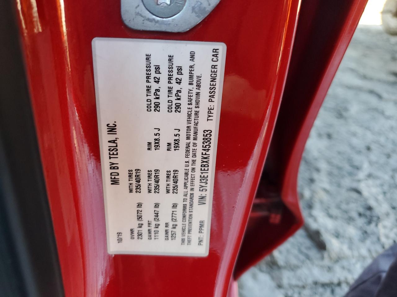 2019 TESLA MODEL 3 - 5YJ3E1EBXKF453853, цвет - Красный, , Электрический, Полный привод из США