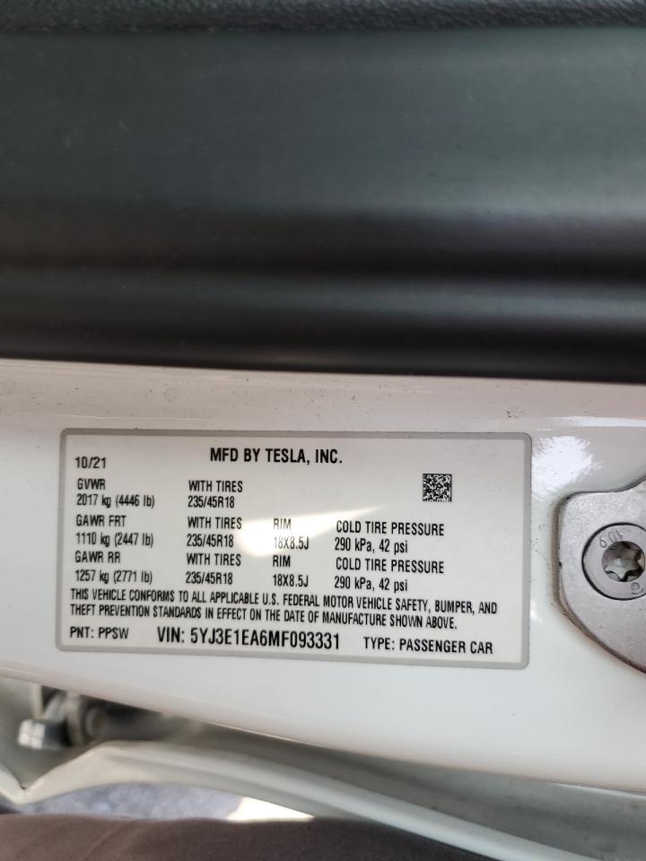 2021 TESLA MODEL 3 - 5YJ3E1EA6MF093331, цвет - Белый, , Электрический, Задний привод из США