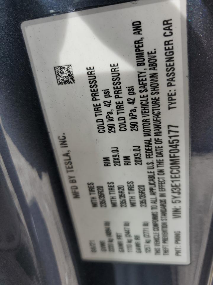 2021 TESLA MODEL 3 - 5YJ3E1EC0MF045177, цвет - Серый, , Электрический, Полный привод из США