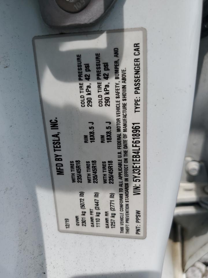 2020 TESLA MODEL 3 - 5YJ3E1EB4LF618961, цвет - Белый, , Электрический, Полный привод из США