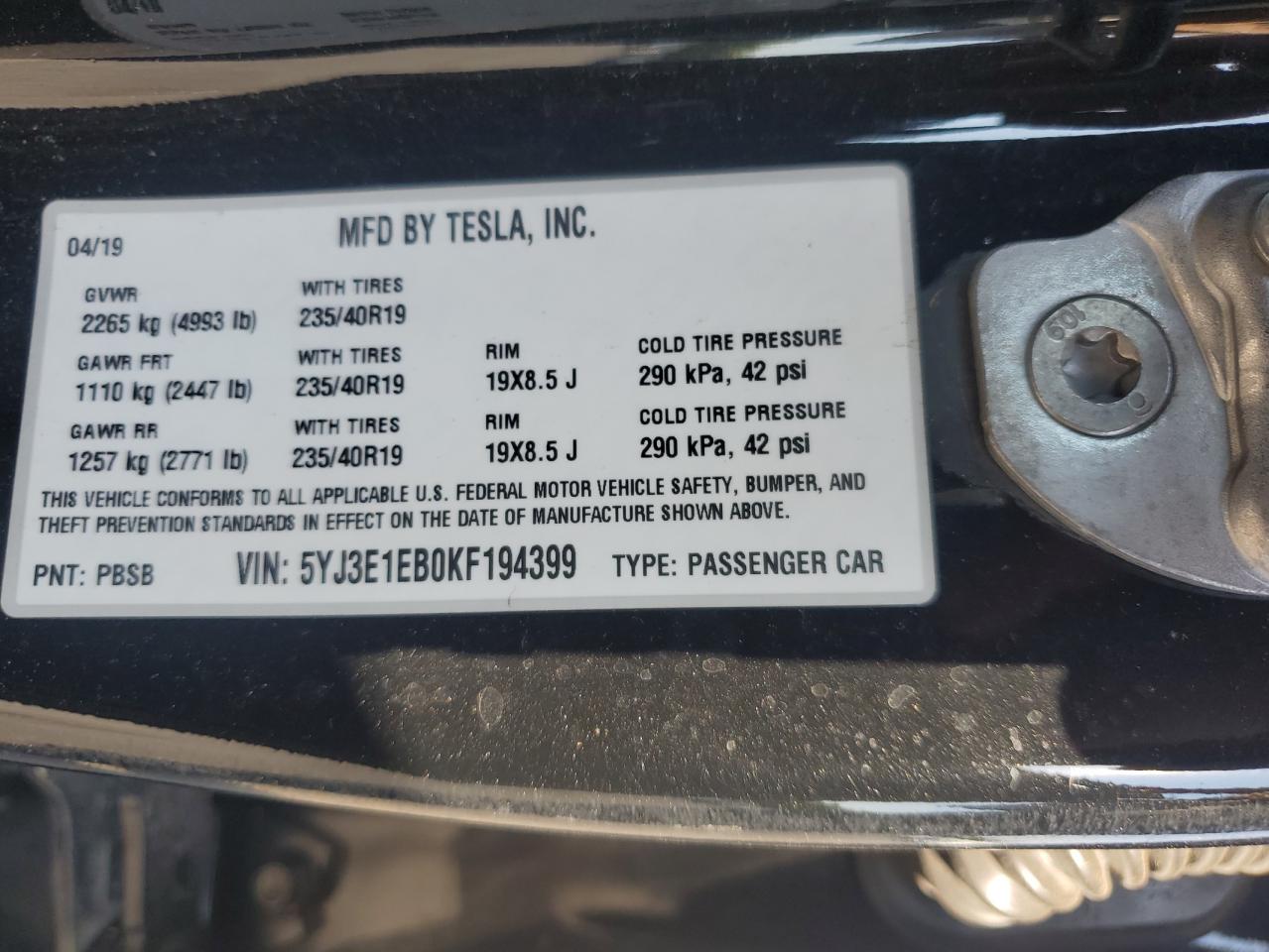 2019 TESLA MODEL 3 - 5YJ3E1EB0KF194399, цвет - Черный, , Электрический, Полный привод из США