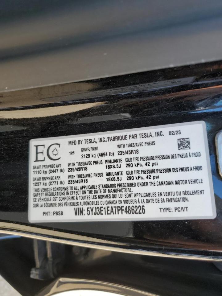 2023 TESLA MODEL 3 - 5YJ3E1EA7PF486226, цвет - Черный, , Электрический, Задний привод из США