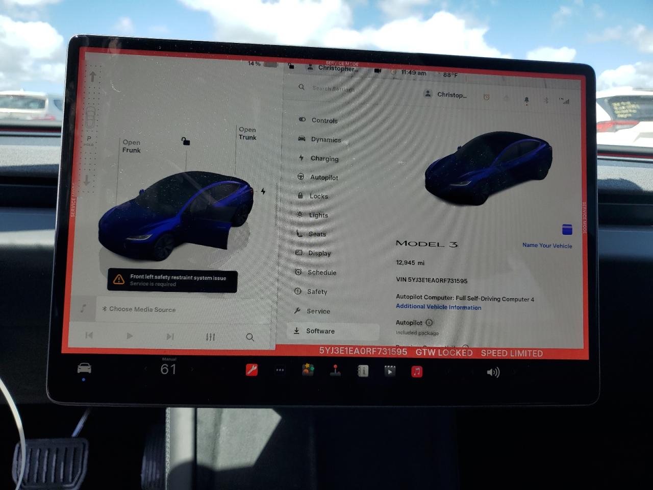 2024 TESLA MODEL 3 - 5YJ3E1EA0RF731595, цвет - Белый, , Электрический, Задний привод из США
