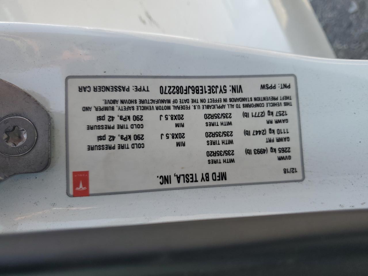 2018 TESLA MODEL 3 - 5YJ3E1EB6JF082270, цвет - Белый, , Электрический, Полный привод из США