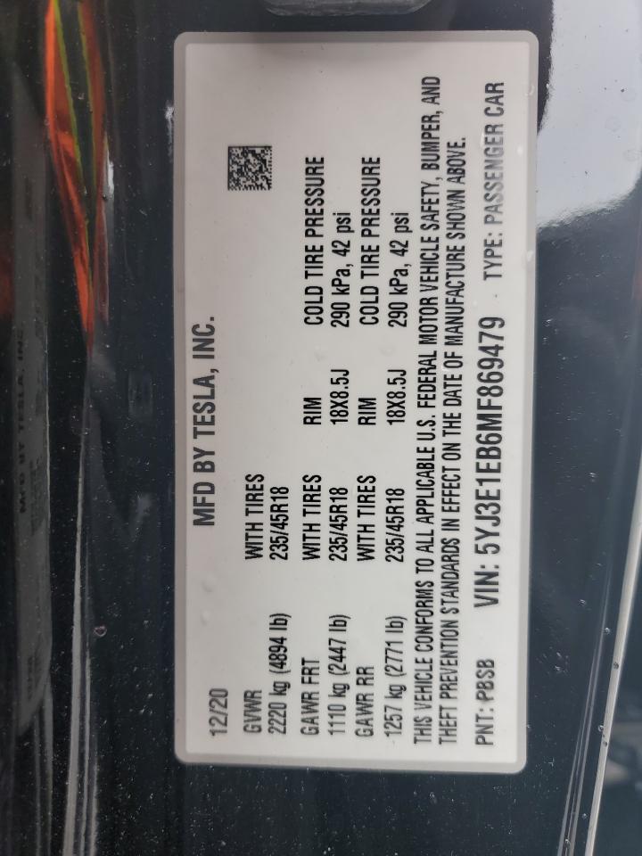 2021 TESLA MODEL 3 - 5YJ3E1EB6MF869479, цвет - Черный, , Электрический, Полный привод из США