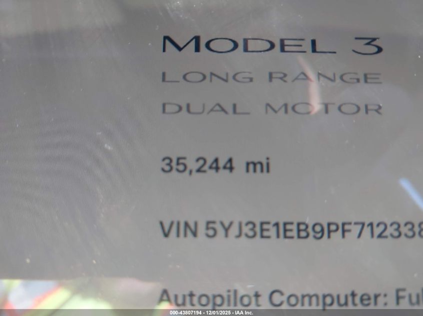2023 TESLA MODEL 3 - 5YJ3E1EB9PF712338, цвет - Серый, U, Электрический, Полный привод из США