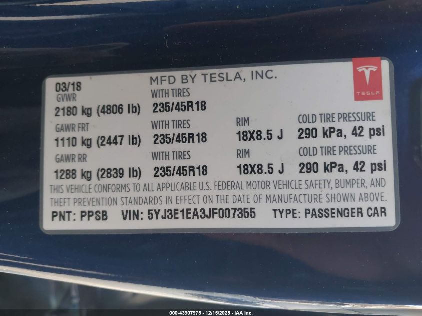 2018 TESLA MODEL 3