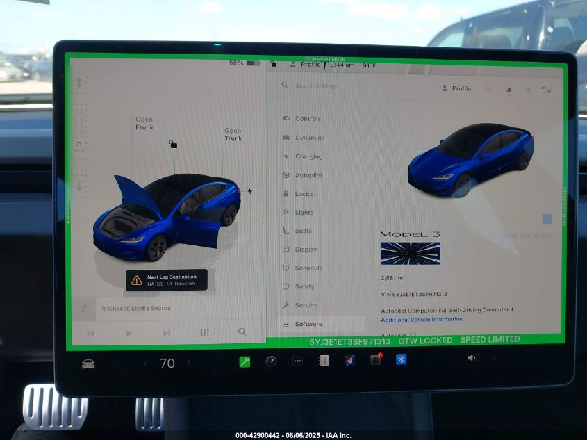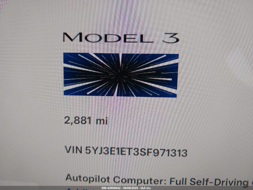 2025 TESLA MODEL 3 - 5YJ3E1ET3SF971313, цвет - Синий, U, Электрический, Полный привод из США
