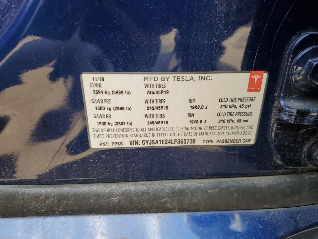 2020 TESLA MODEL S - 5YJSA1E24LF360738, цвет - Синий, , Электрический, Полный привод из США