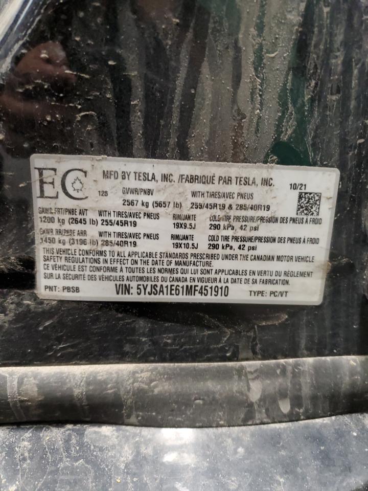 2021 TESLA MODEL S - 5YJSA1E61MF451910, цвет - Черный, , Электрический, Полный привод из США
