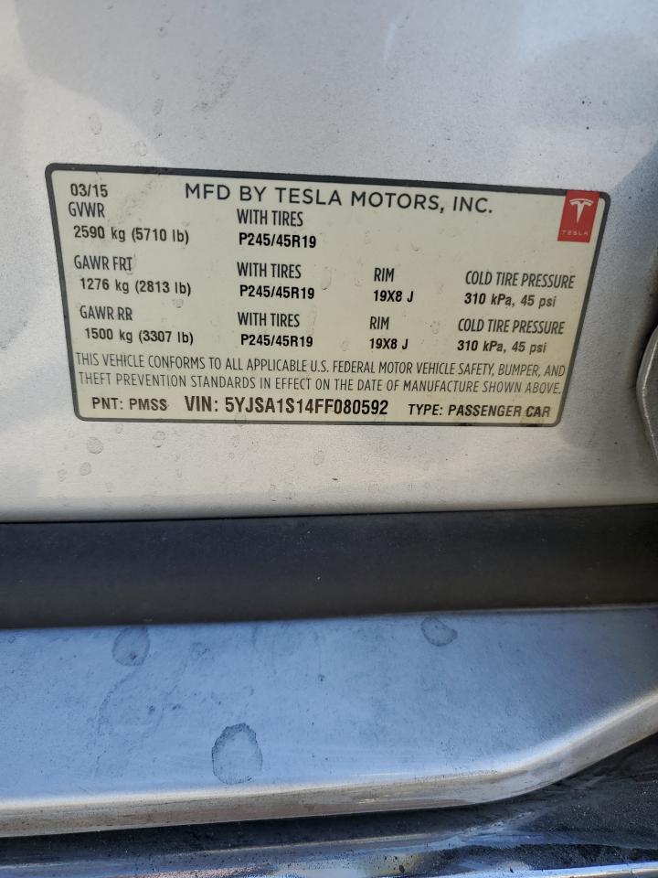 2015 TESLA MODEL S - 5YJSA1S14FF080592, цвет - Серебряный, , Электрический, Задний привод из США