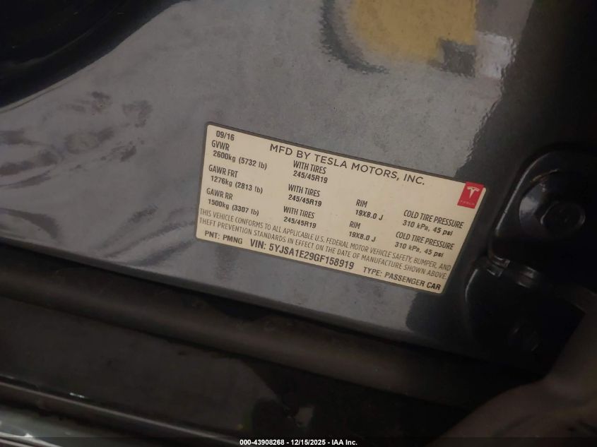 2016 TESLA MODEL S - 5YJSA1E29GF158919, цвет - Синий, U, Электрический, Полный привод из США