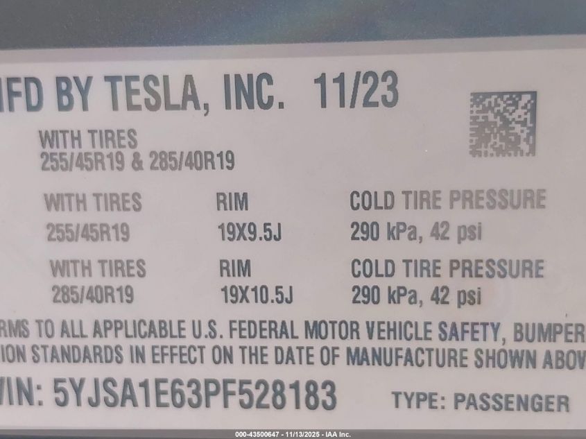 2023 TESLA MODEL S - 5YJSA1E63PF528183, цвет - Серый, U, Электрический, Полный привод из США