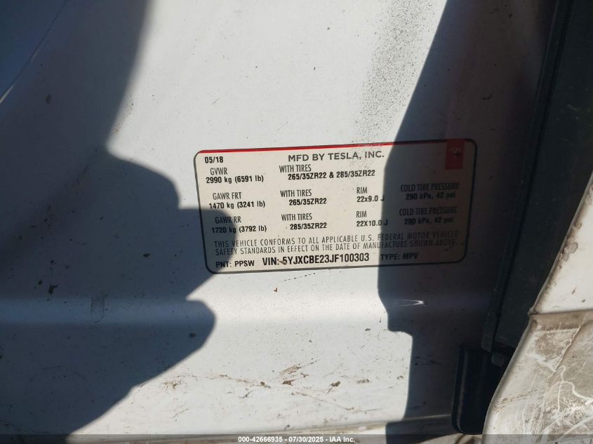 2018 TESLA MODEL X - 5YJXCBE23JF100303, цвет - Белый, U, Электрический, Полный привод из США