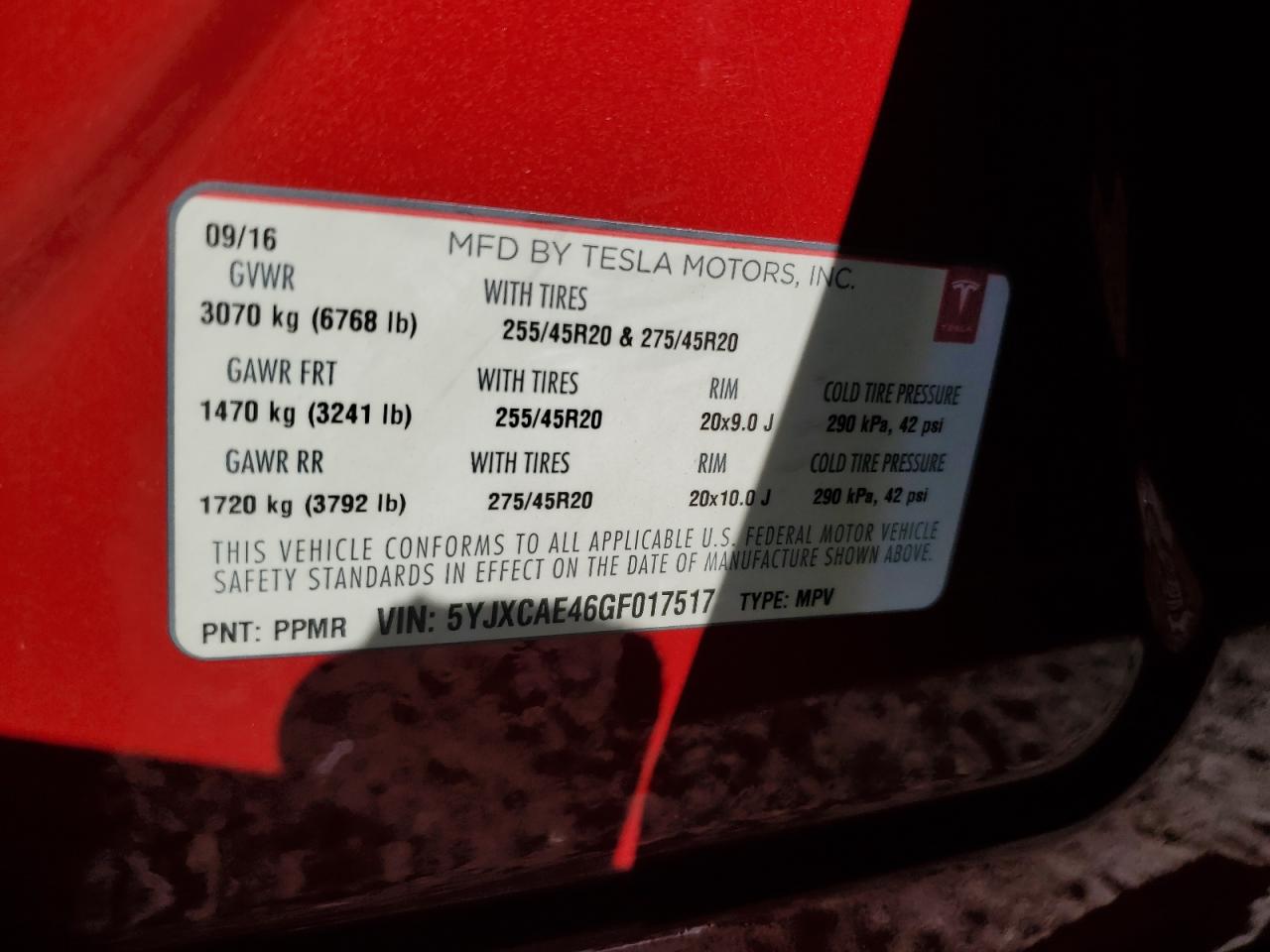 2016 TESLA MODEL X - 5YJXCAE46GF017517, цвет - Красный, , Электрический, Полный привод из США