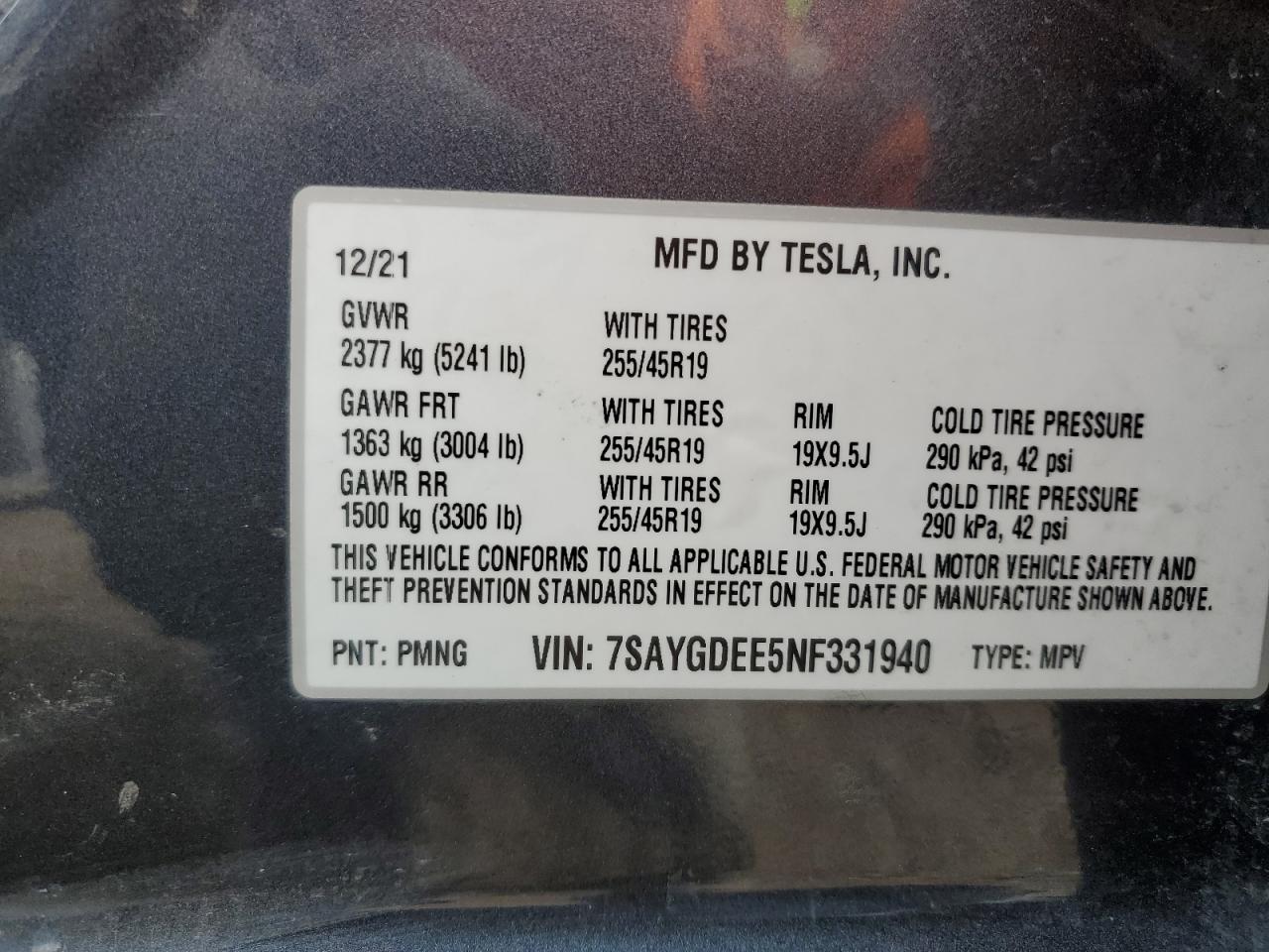2022 TESLA MODEL Y - 7SAYGDEE5NF331940, цвет - Древесный уголь, , Электрический, Полный привод из США