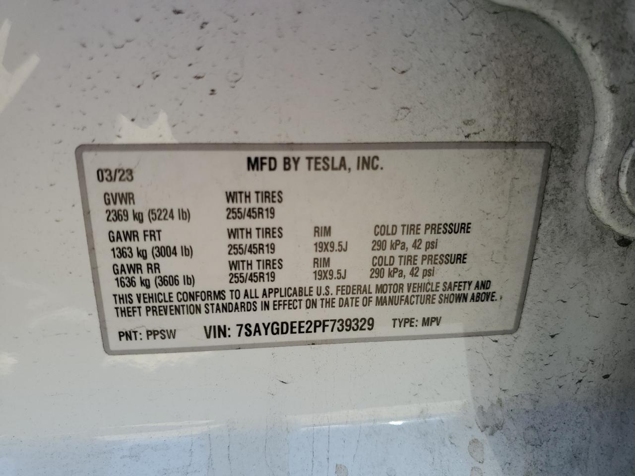 2023 TESLA MODEL Y - 7SAYGDEE2PF739329, цвет - Белый, , Электрический, Полный привод из США