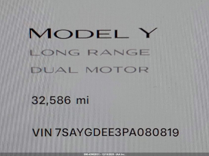 2023 TESLA MODEL Y - 7SAYGDEE3PA080819, цвет - Белый, U, Электрический, Полный привод из США