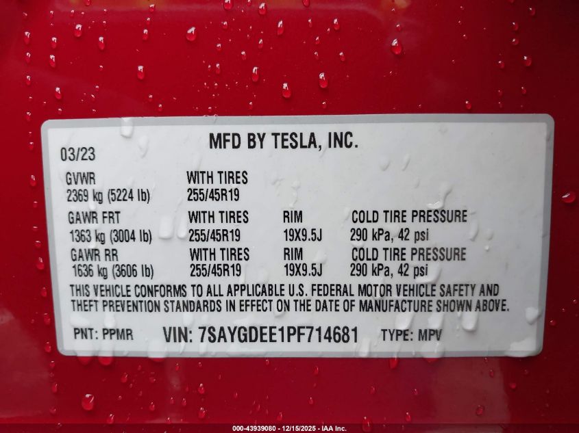 2023 TESLA MODEL Y - 7SAYGDEE1PF714681, цвет - Красный, 0.0, Электрический, Полный привод из США