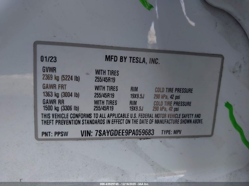 2023 TESLA MODEL Y - 7SAYGDEE9PA059683, цвет - , U, Электрический, Полный привод из США