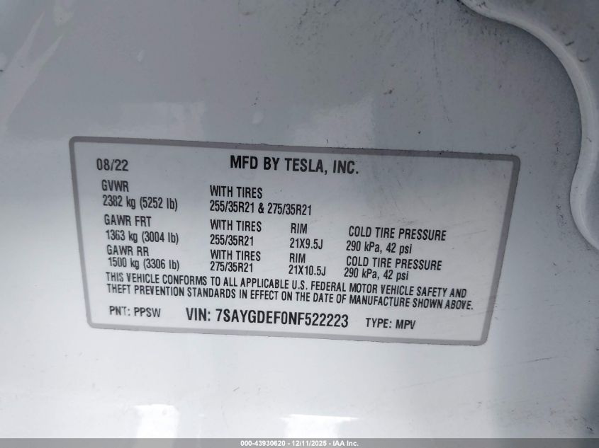 2022 TESLA MODEL Y - 7SAYGDEF0NF522223, цвет - Белый, U, Электрический, Полный привод из США