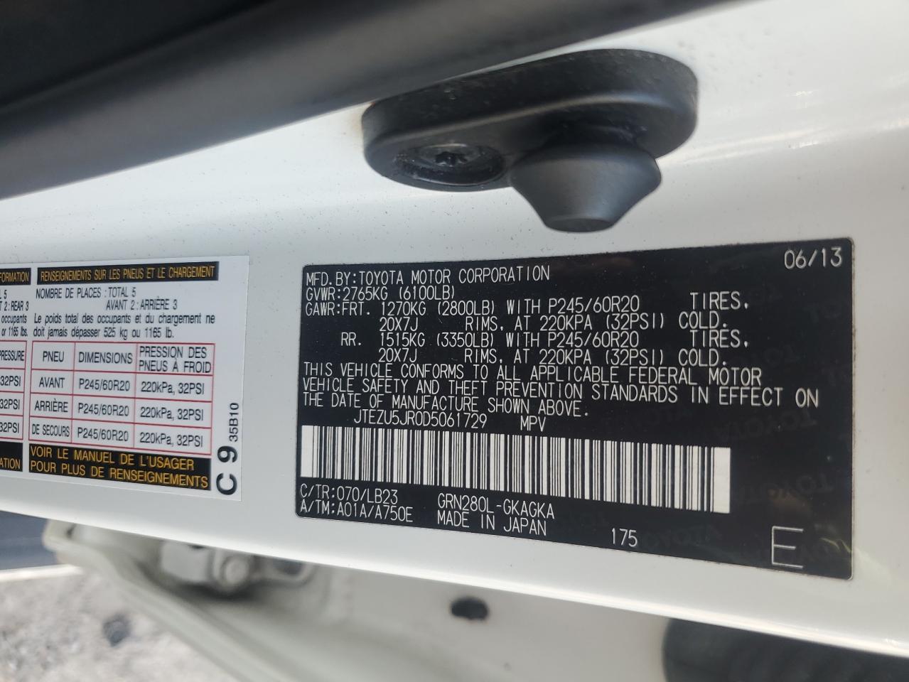 2013 TOYOTA 4RUNNER - JTEZU5JR0D5061729, цвет - Белый, 4.0, Бензин, Задний привод из США