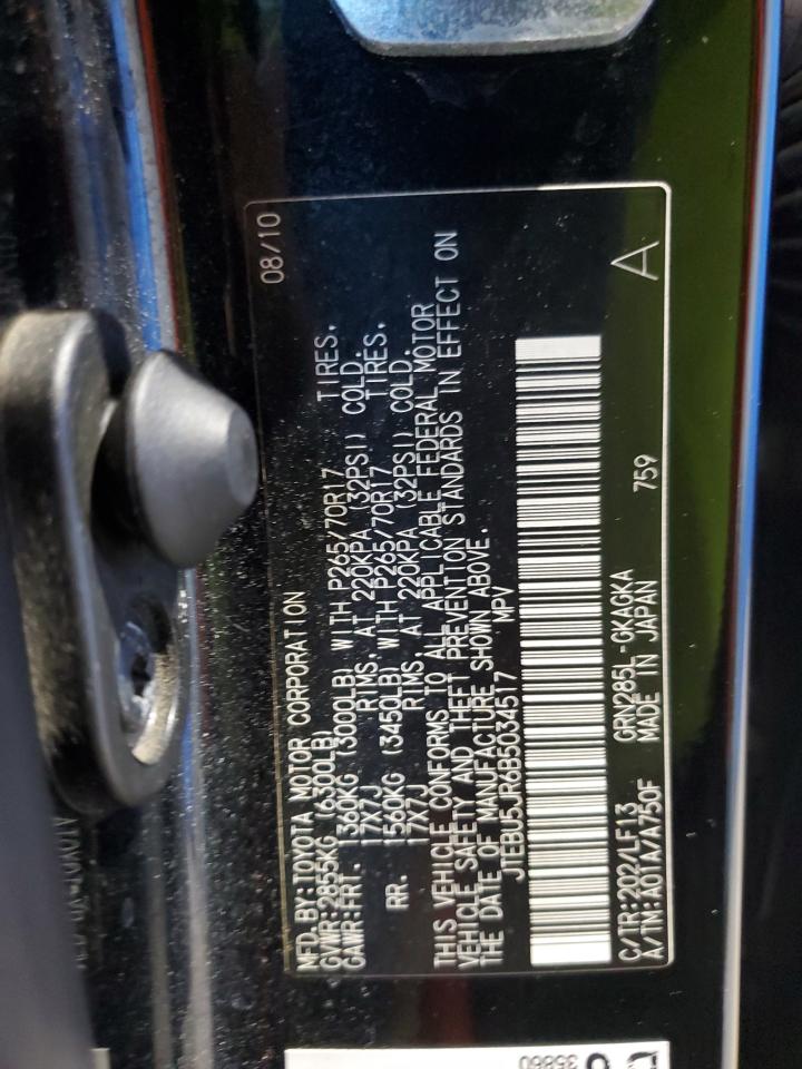 2011 TOYOTA 4RUNNER - JTEBU5JR6B5034517, цвет - Черный, 4.0, Бензин, 4x4 с задним приводом из США