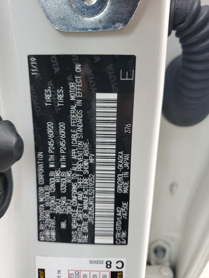 2020 TOYOTA 4RUNNER - JTEZU5JR1L5219252, цвет - Белый, 4.0, Бензин, Задний привод из США