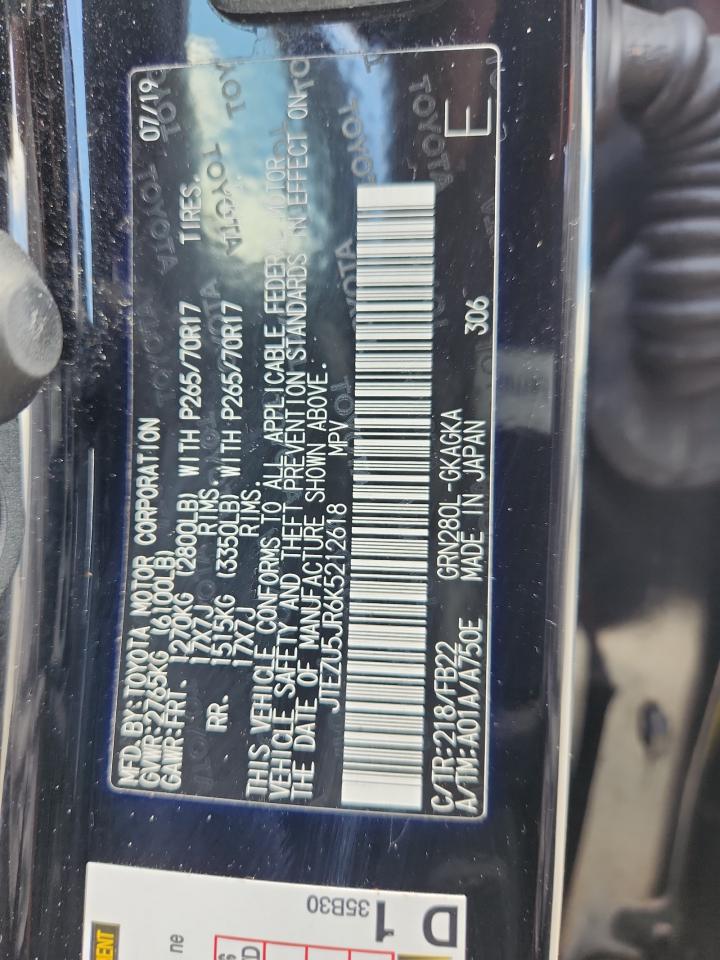 2019 TOYOTA 4RUNNER - JTEZU5JR6K5212618, цвет - Черный, 4.0, Бензин, Задний привод из США