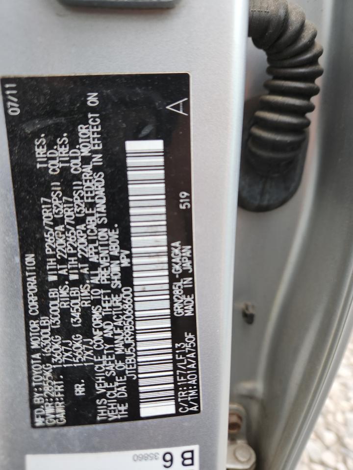 2011 TOYOTA 4RUNNER - JTEBU5JR9B5068600, цвет - Серебряный, 4.0, Бензин, 4x4 с задним приводом из США