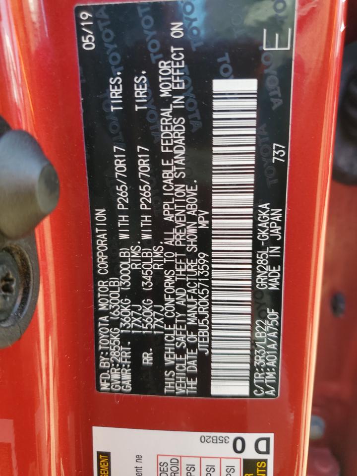 2019 TOYOTA 4RUNNER - JTEBU5JR0K5713599, цвет - Бордовый, 4.0, Бензин, 4x4 с задним приводом из США
