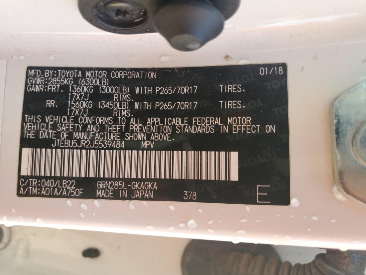 2018 TOYOTA 4RUNNER - JTEBU5JR2J5539484, цвет - Белый, 4.0, Бензин, 4x4 с задним приводом из США