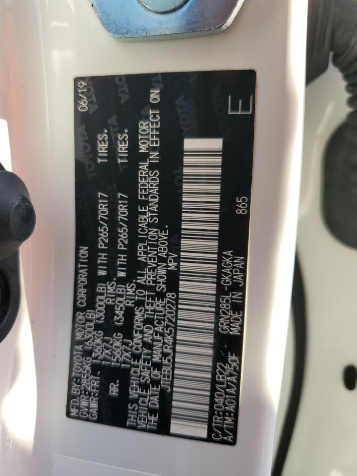 2019 TOYOTA 4RUNNER - JTEBU5JR4K5720278, цвет - Белый, 4.0, Бензин, 4x4 с задним приводом из США