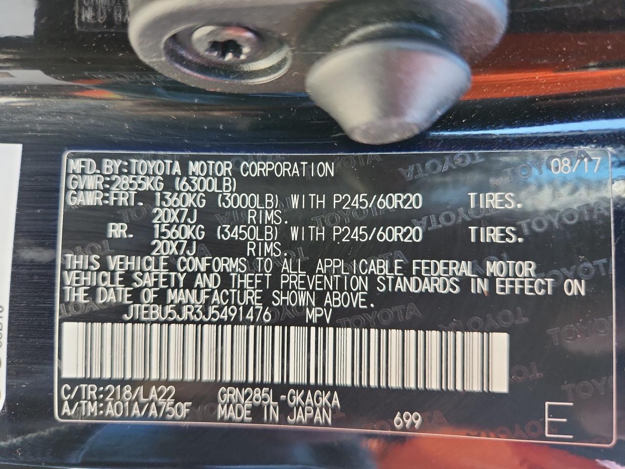 2018 TOYOTA 4RUNNER - JTEBU5JR3J5491476, цвет - Черный, 4.0, Бензин, 4x4 с задним приводом из США