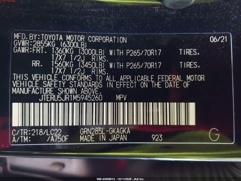 2021 TOYOTA 4RUNNER SR5/SR5 PREMIUM