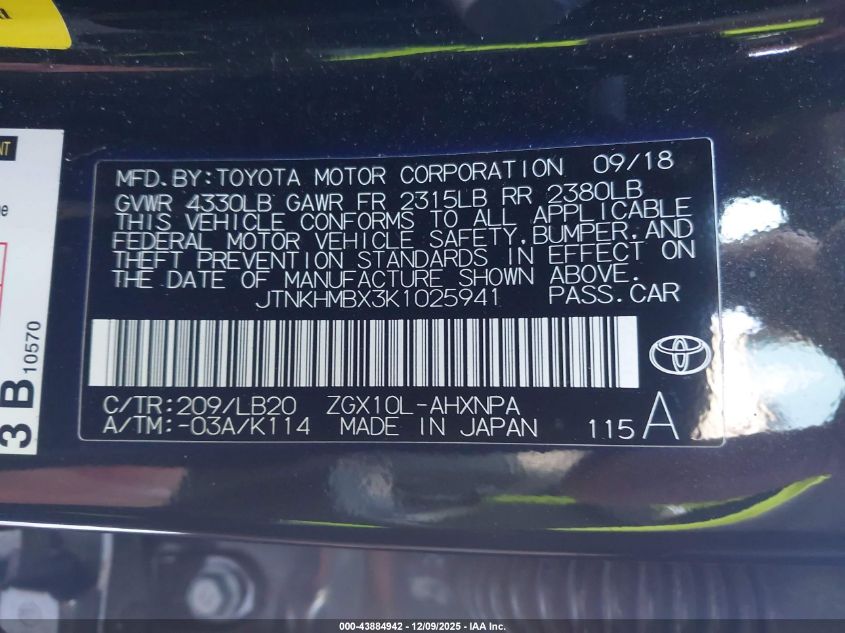 Цвет ЧерныйЦилиндры 4Привод Передний приводVIN JTNKHMBX3K1025941Состояние СтационарноПовреждения Передняя или задняя
