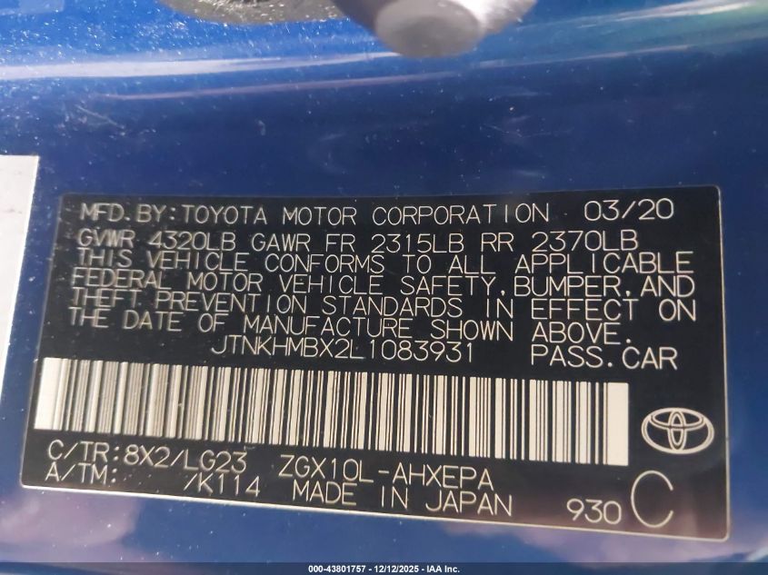 2020 TOYOTA C-HR - JTNKHMBX2L1083931, цвет - Синий, 2.0, Бензин, Передний привод из США