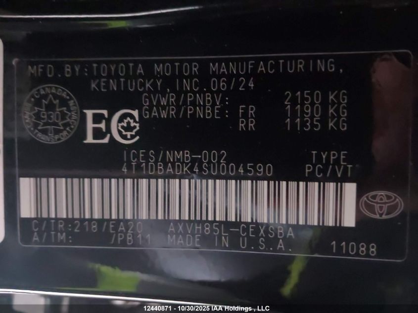 2025 TOYOTA CAMRY - 4T1DBADK4SU004590, цвет - Черный, , Бензин, Полный привод из США