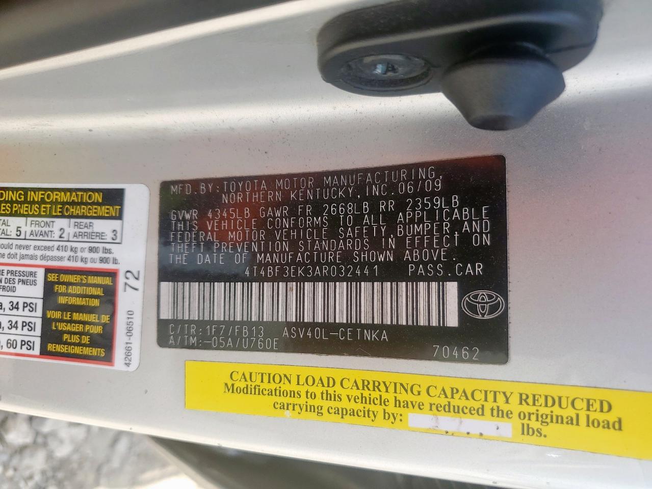 Цвет СеребряныйЦилиндры 4VIN 4T4BF3EK3AR032441Состояние НеизвестноПовреждения НезначительныеДата аукциона 2025-10-09