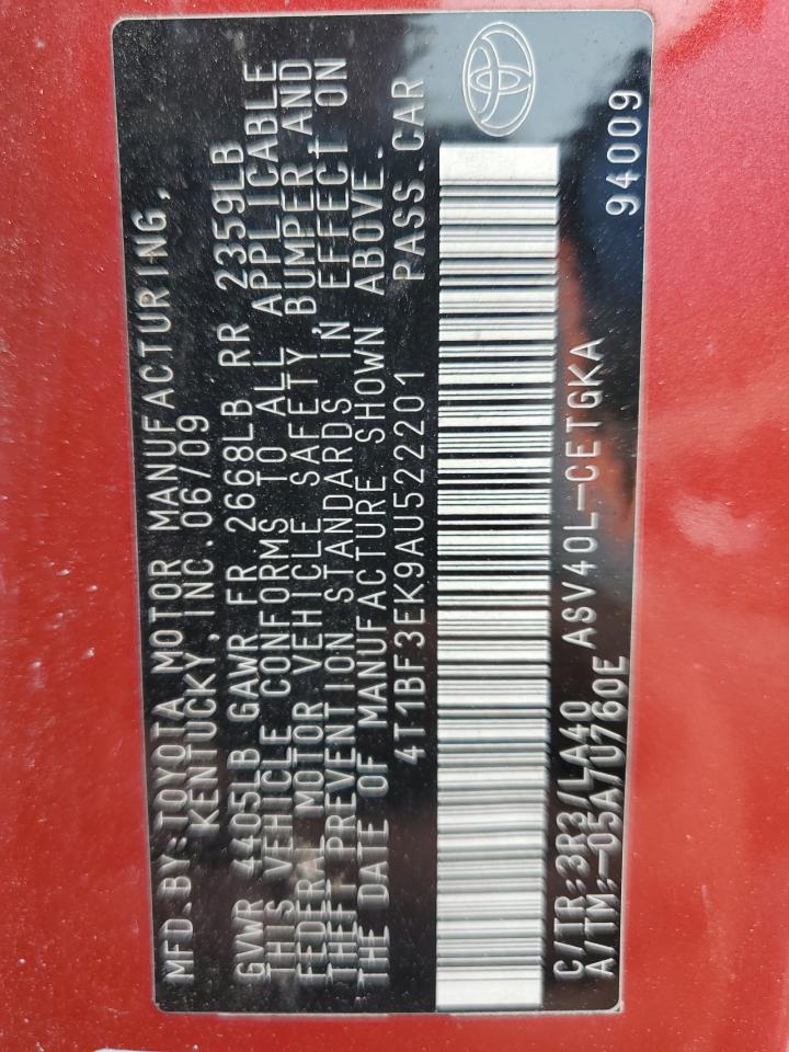 2010 TOYOTA CAMRY - 4T1BF3EK9AU522201, цвет - Красный, 2.5, Бензин, из США