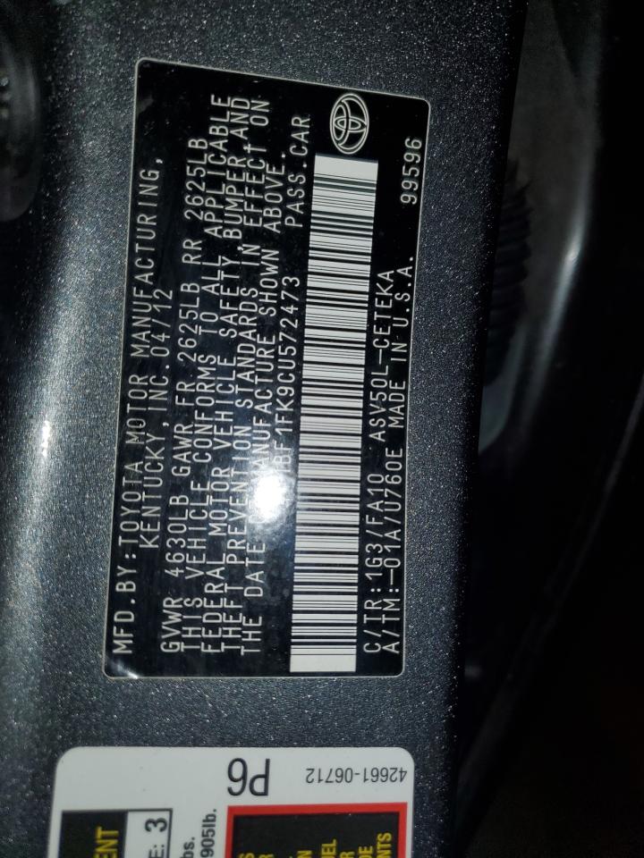 2012 TOYOTA CAMRY - 4T1BF1FK9CU572473, цвет - Серый, 2.5, Бензин, из США