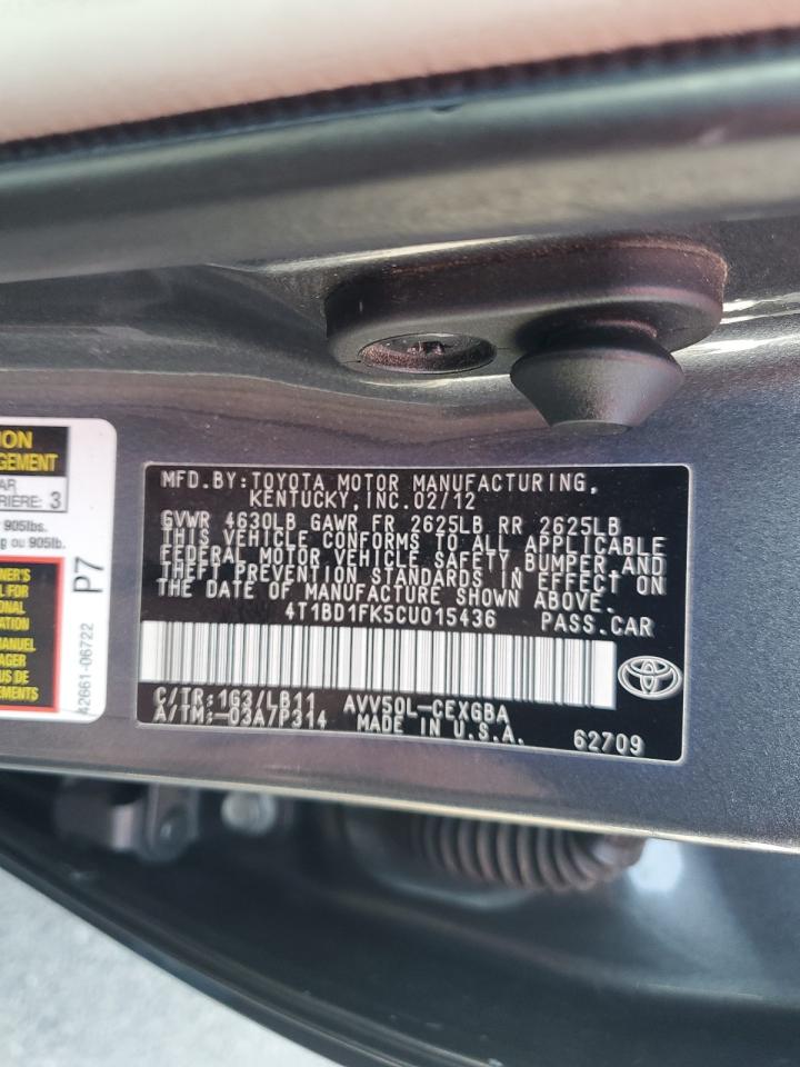2012 TOYOTA CAMRY HYBRID - 4T1BD1FK5CU015436, цвет - Серый, 2.5, Гибрид, из США